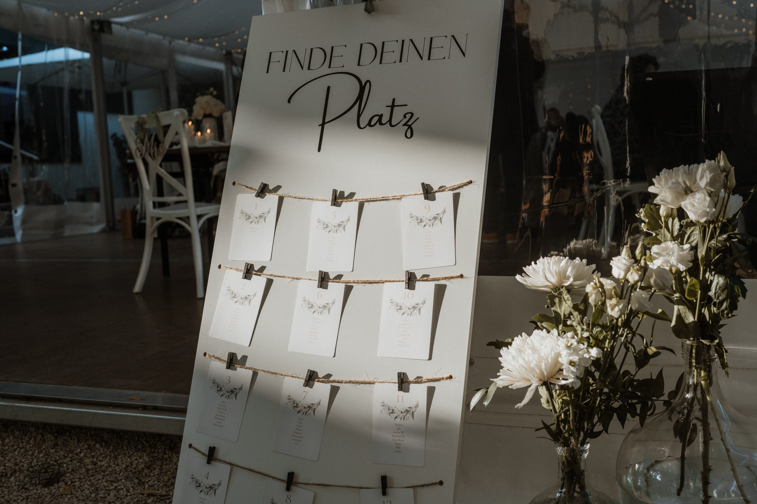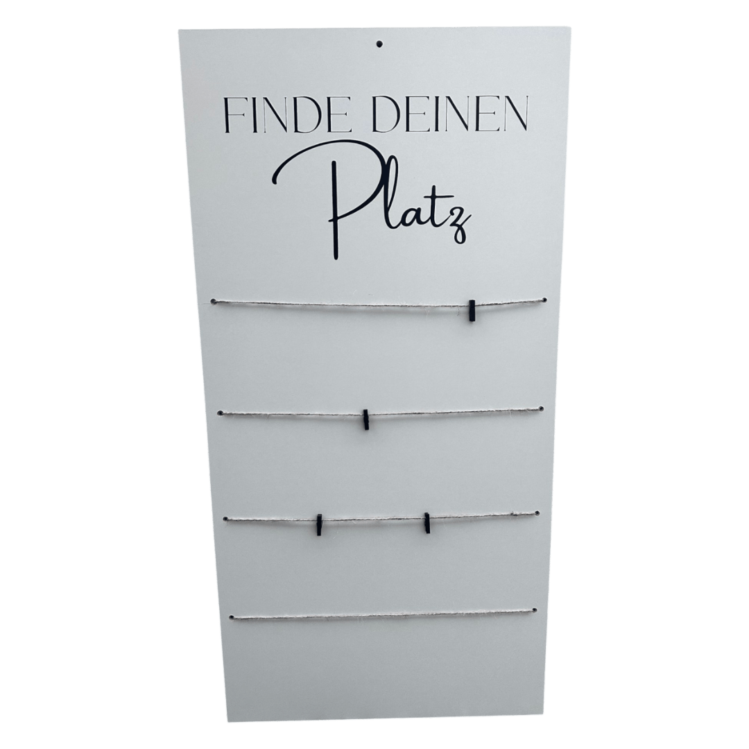 Artikel: Tischplan Schild Weiß inkl. Schnüre und Wäscheklammern