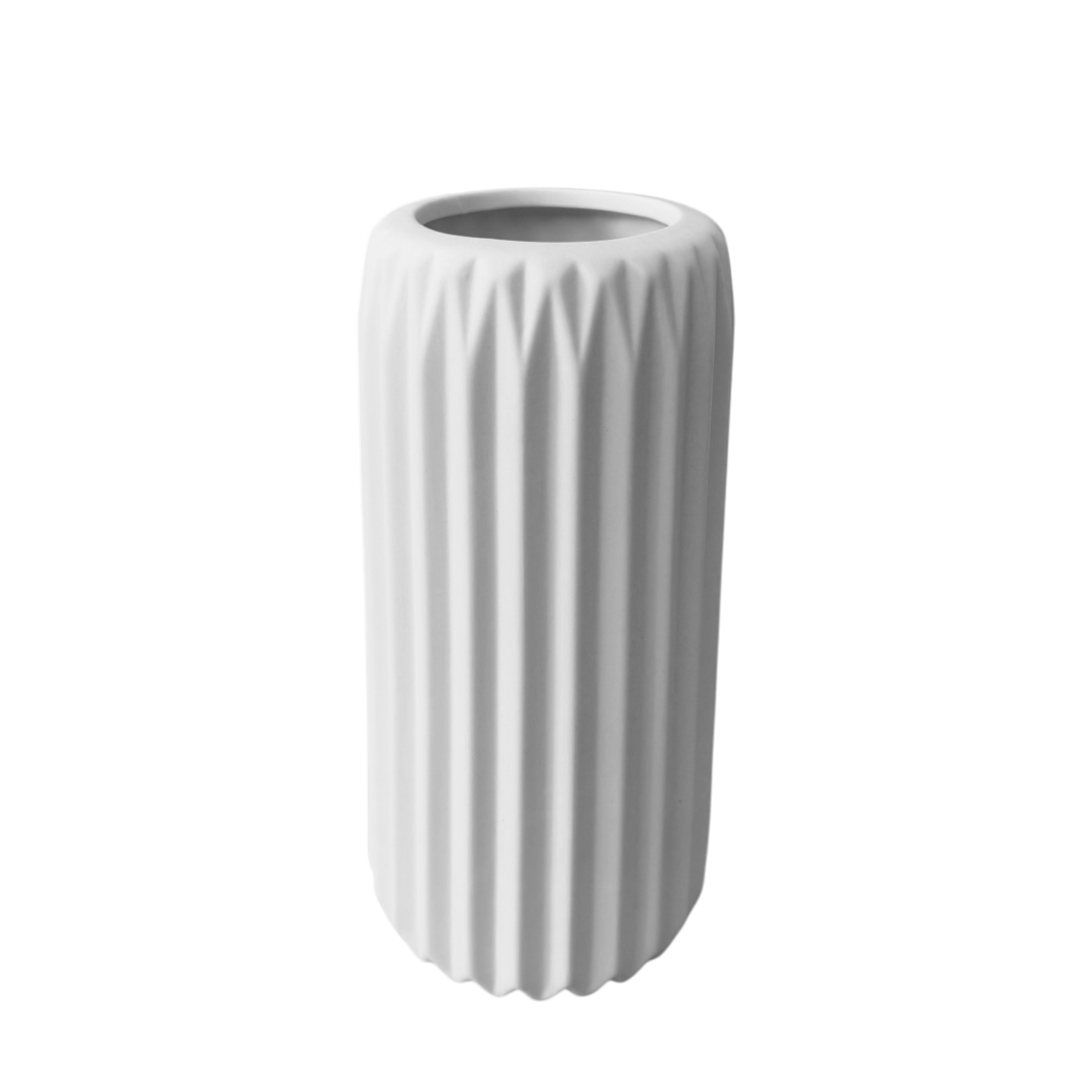 Artikel: Keramikvase Weiß matt, mittel, geriffelt