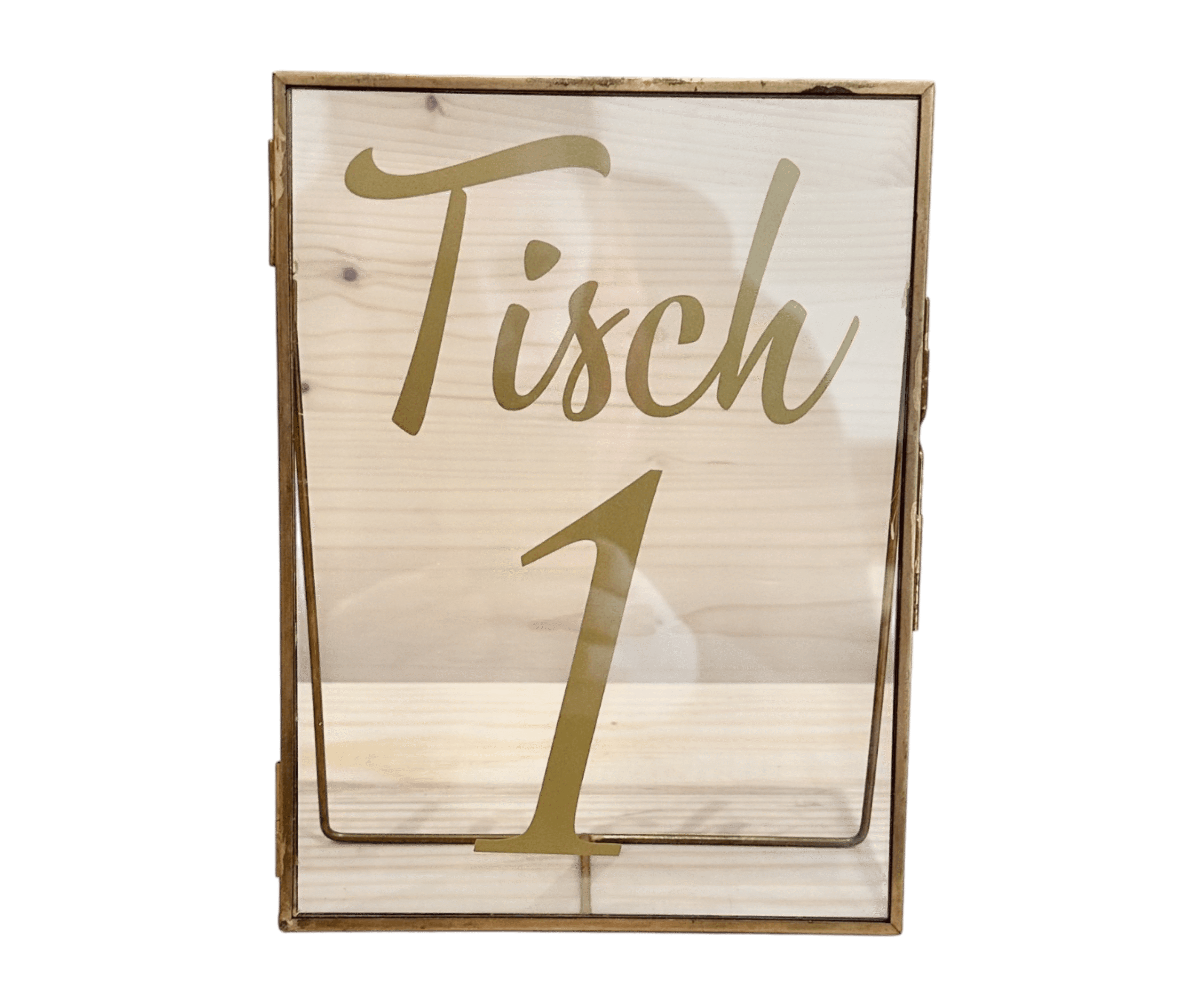 Artikel: Metallbilderrahmen gold mit Tischnummer