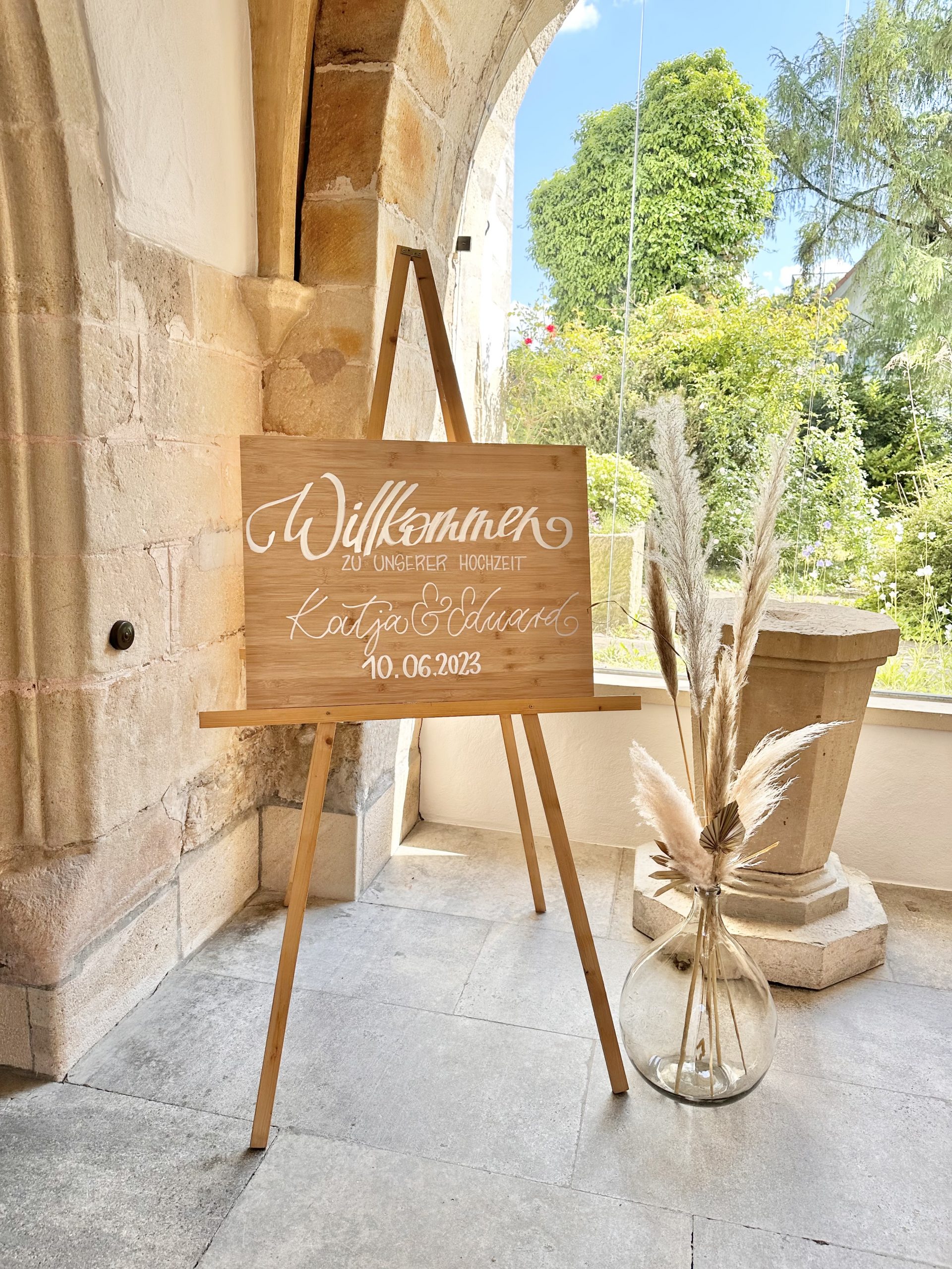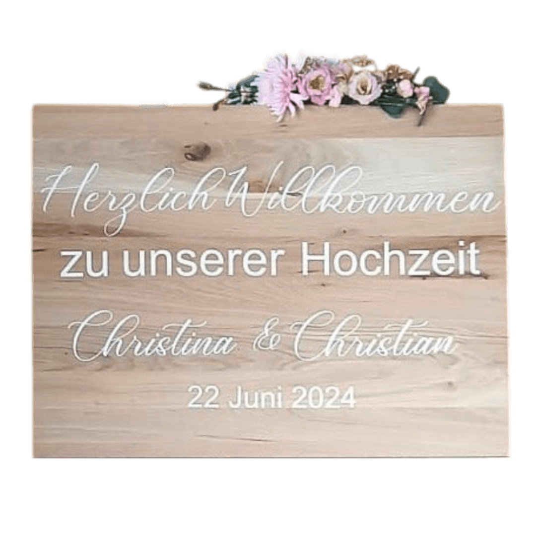Artikel: Willkommen Schild Holz individuell Mietartikel