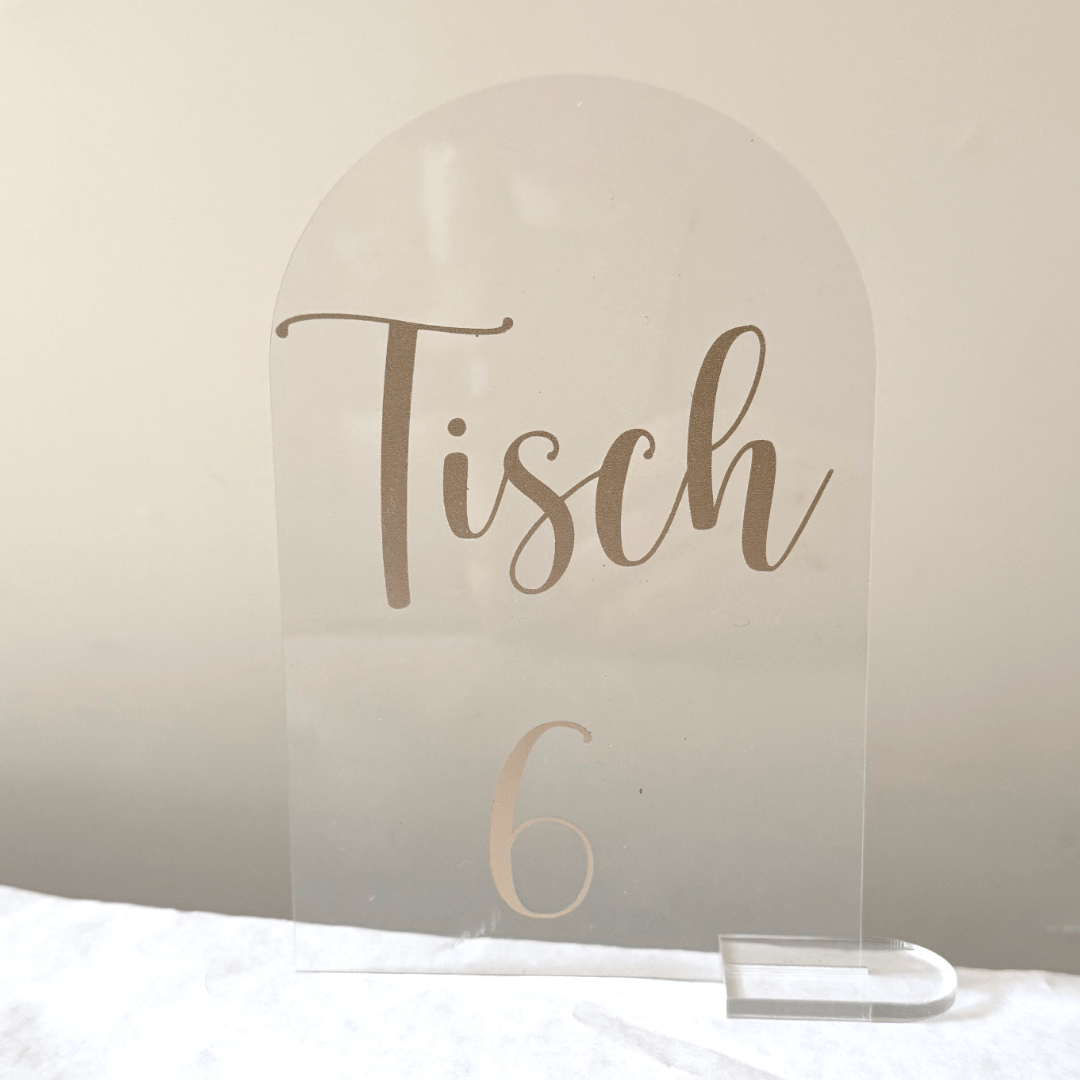 Artikel: Tischnummer Acryl halbrund mit Fuß