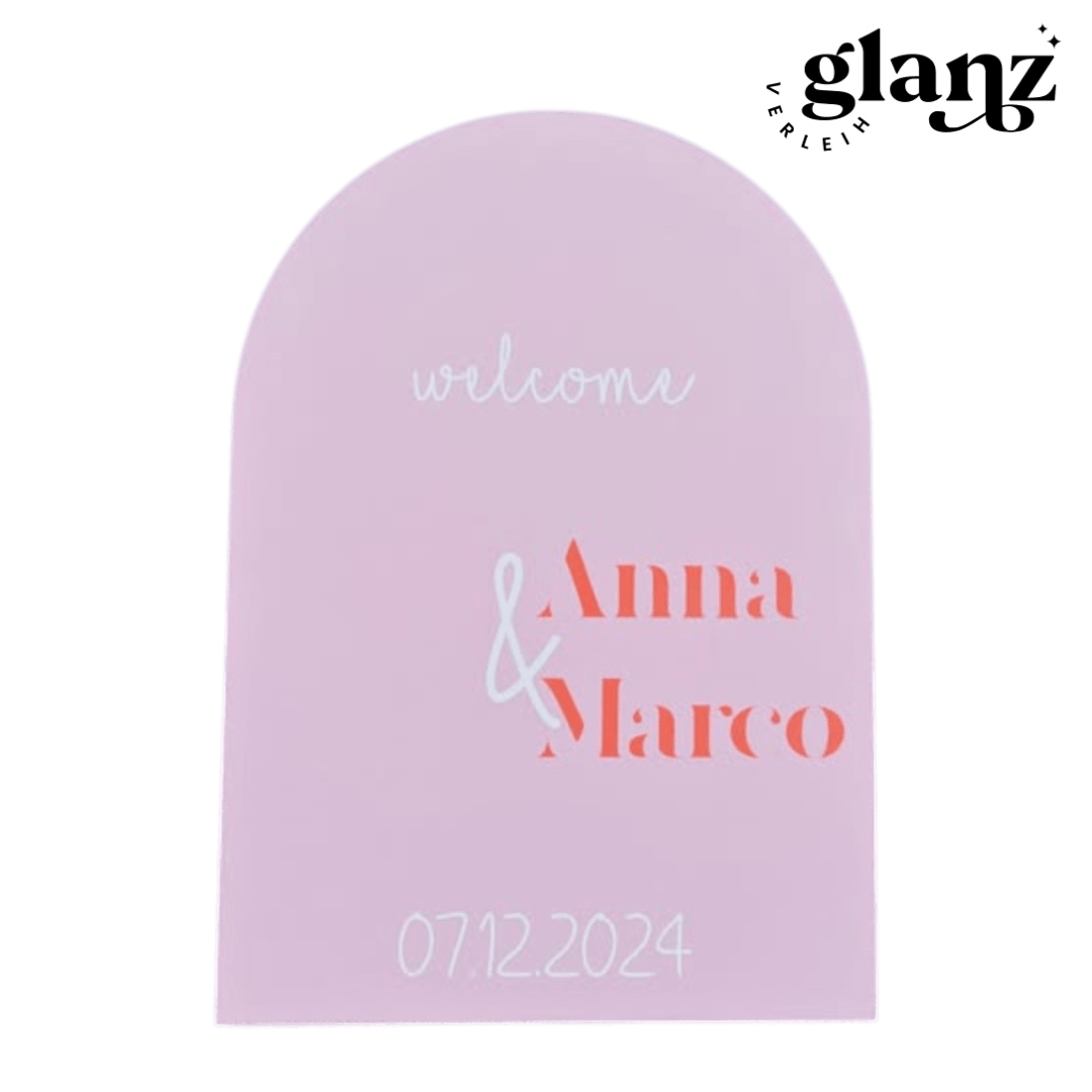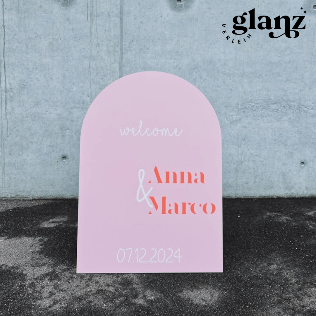 Farbe & Schrift: Rosa, auch individuell anpassbar (ab 39 €)